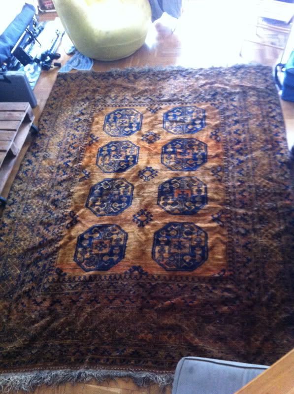 This is an old rug belonging to my grandmother. She recently was moved to the US and I was given the rug to keep. I know little to nothing about old rugs but I'm assuming this has been with my grandmother for at least 40 or so years? I was wondering if anyone could give me idea of the type, age, and maybe an estimate if possible? Thank you in advance.